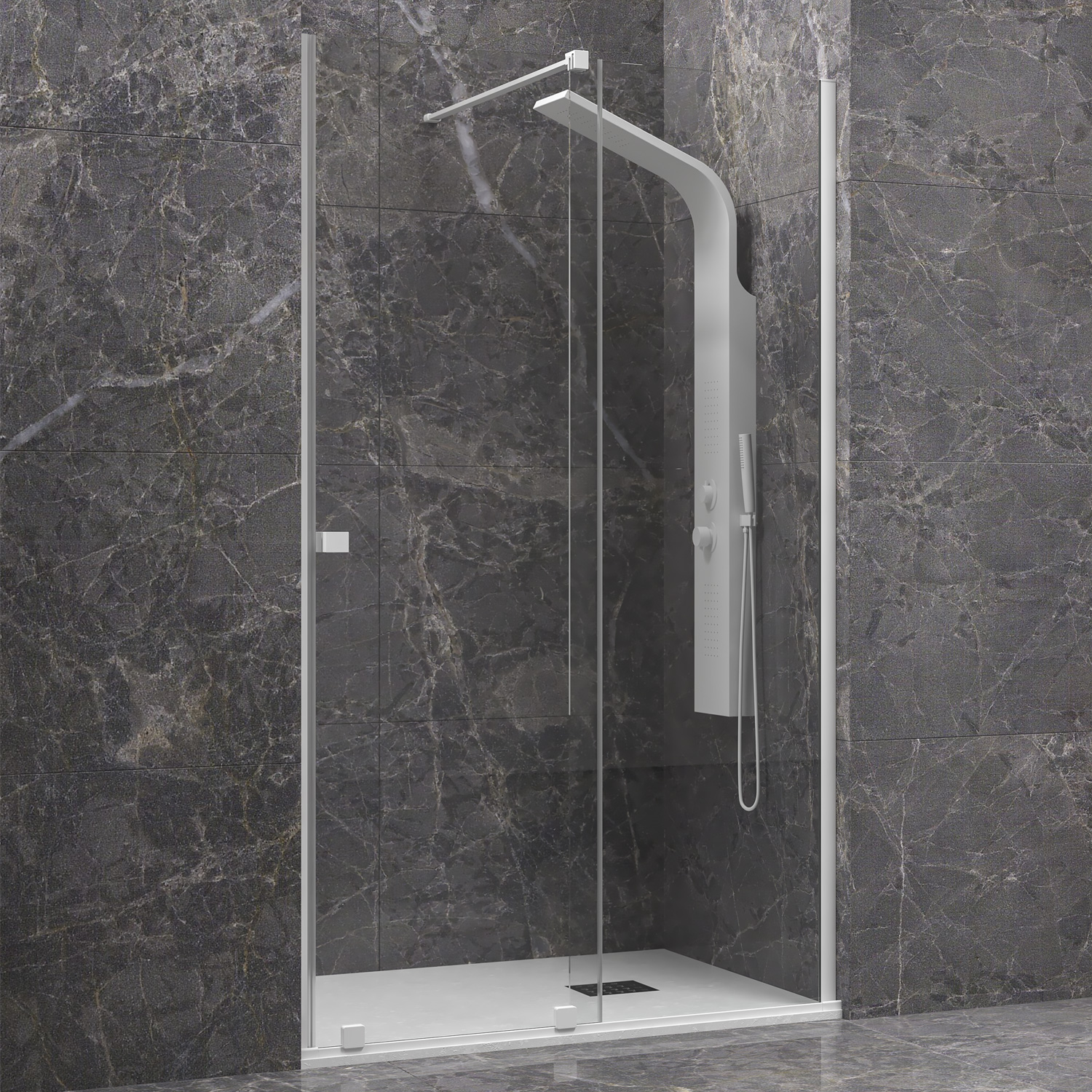 Καμπίνα από τοίχο σε τοίχο με διάφανο κρύσταλλο ANIMUS 400 White KARAG 150x200cm