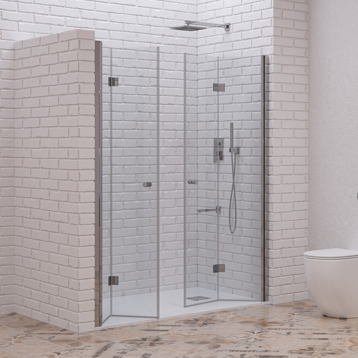Καμπίνα μπανιέρας από τοίχο σε τοίχο με διάφανο κρύσταλλο PENTA K-100 Χρωμέ KARAG 160x148cm