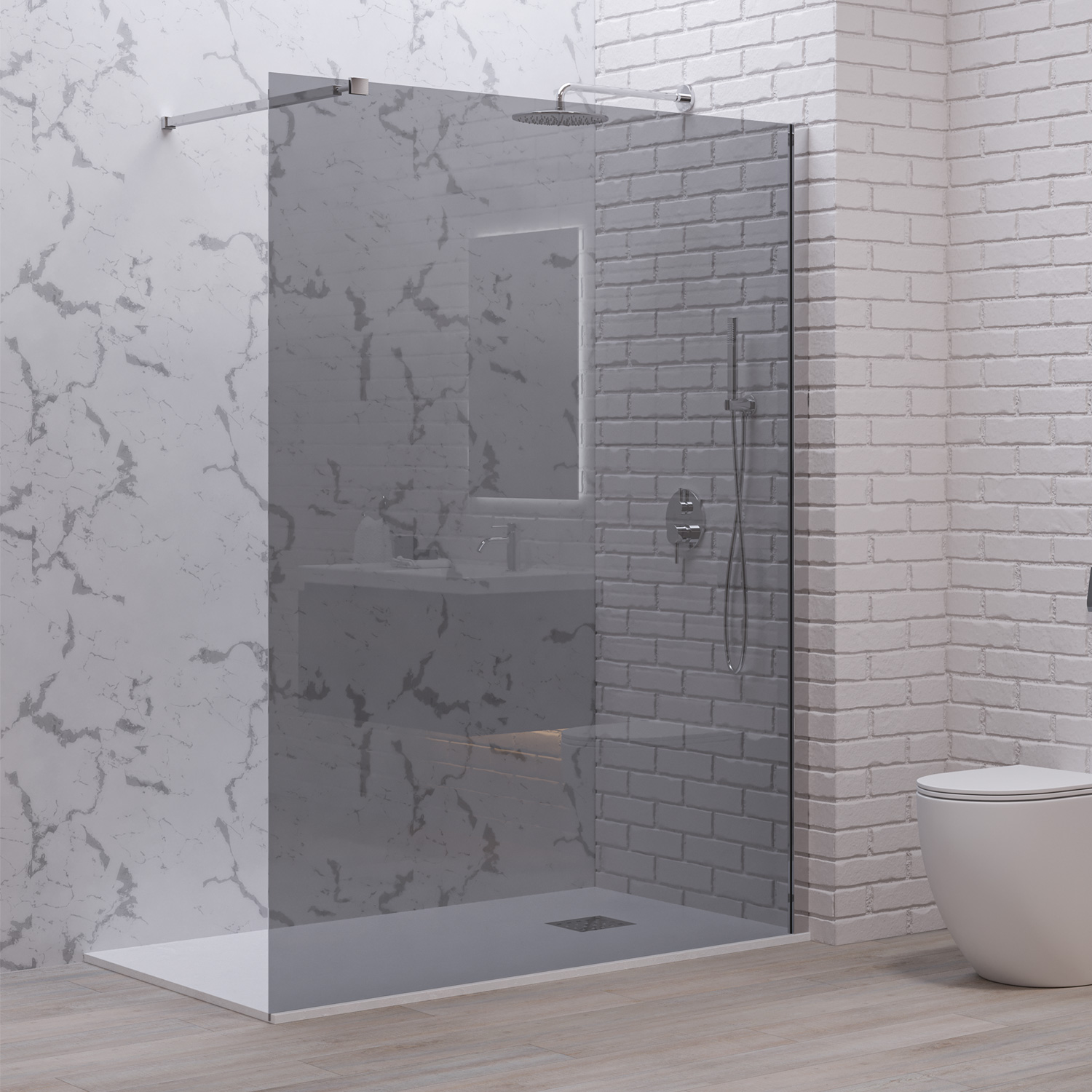 Σταθερό διαχωριστικό ντουζιέρας με fume κρύσταλλο WALKIN 1 Cromo KARAG