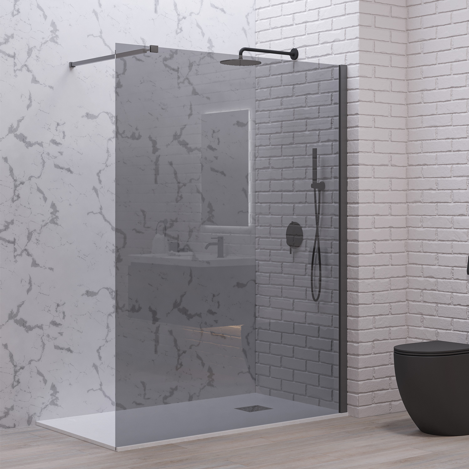 Σταθερό διαχωριστικό ντουζιέρας με fume κρύσταλλο WALKIN 1 Gun Metal KARAG 90x200cm