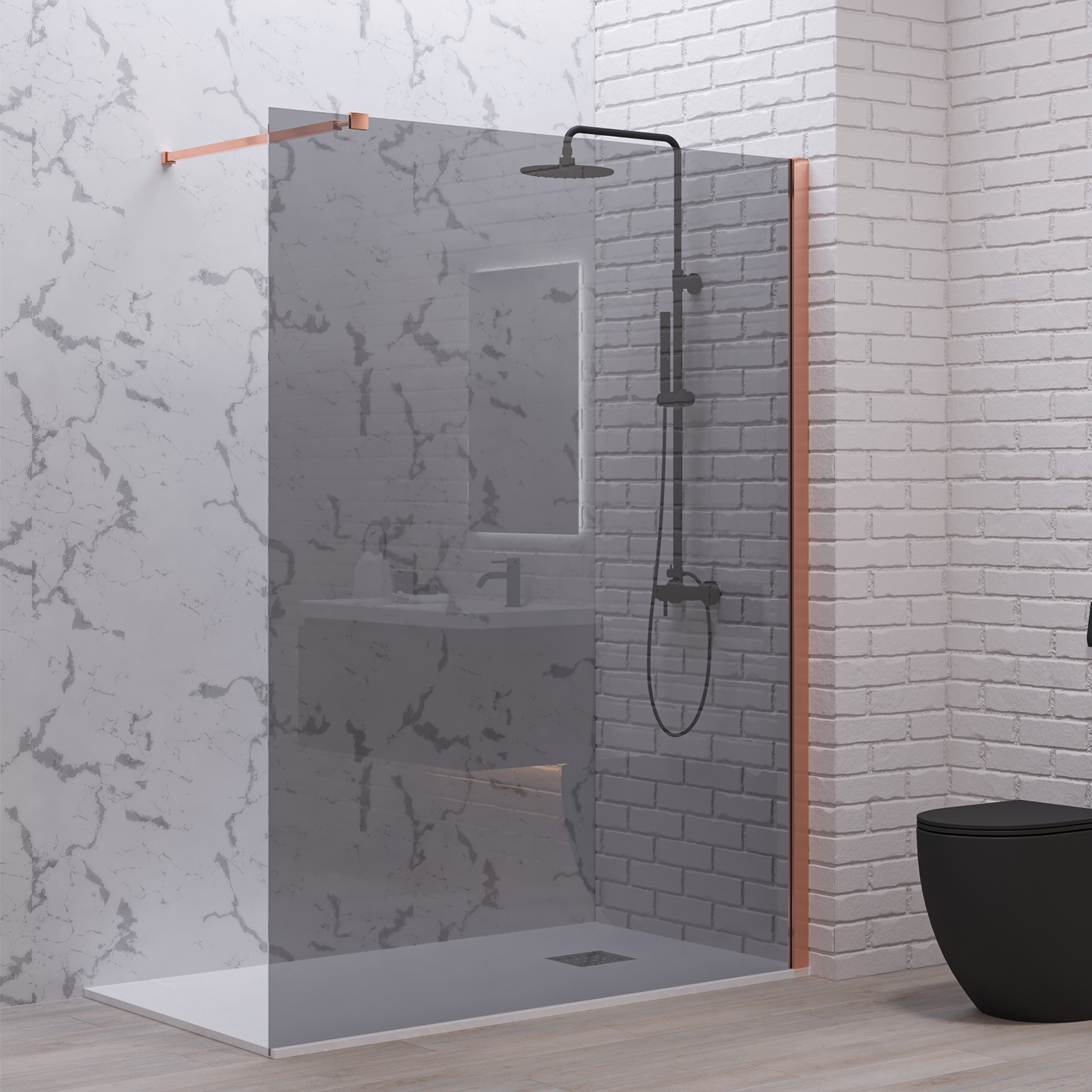 Σταθερό διαχωριστικό ντουζιέρας με fume κρύσταλλο WALKIN 1 Rose Gold KARAG 120x200cm